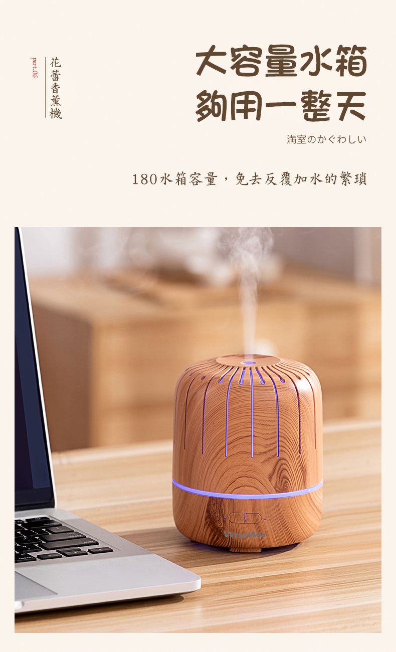 Elegant life starts with the flower bud aromatherapy humidifier. The soft aroma, the soothing and relaxing flowing aroma, connects the sense of sight and smell, creating a subtle sensory resonance. Two-level spray, one-click switching, fine cold mist, keeping the air moist and deeply hydrating your skin. Colorful gradient ambient lights accompany the mist, creating a romantic atmosphere. It works silently, with operating sound as low as 25 decibels, allowing you to sleep peacefully and breathe natural fragrance. It is suitable for small living rooms, small rooms, offices, etc. It has the functions of nourishing skin, aromatherapy, plant humidification, repelling mosquitoes, deodorizing, and creating atmosphere. 180ml large-capacity water tank, long-lasting spray moisturizing. Intelligent power-off design makes it safer and more convenient to use. The supplied USB cable must be used when powering to ensure that the product can be powered normally.