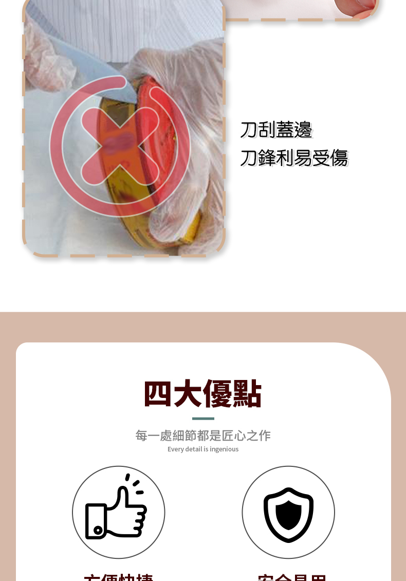 - 開出的罐頭邊緣平滑不界手