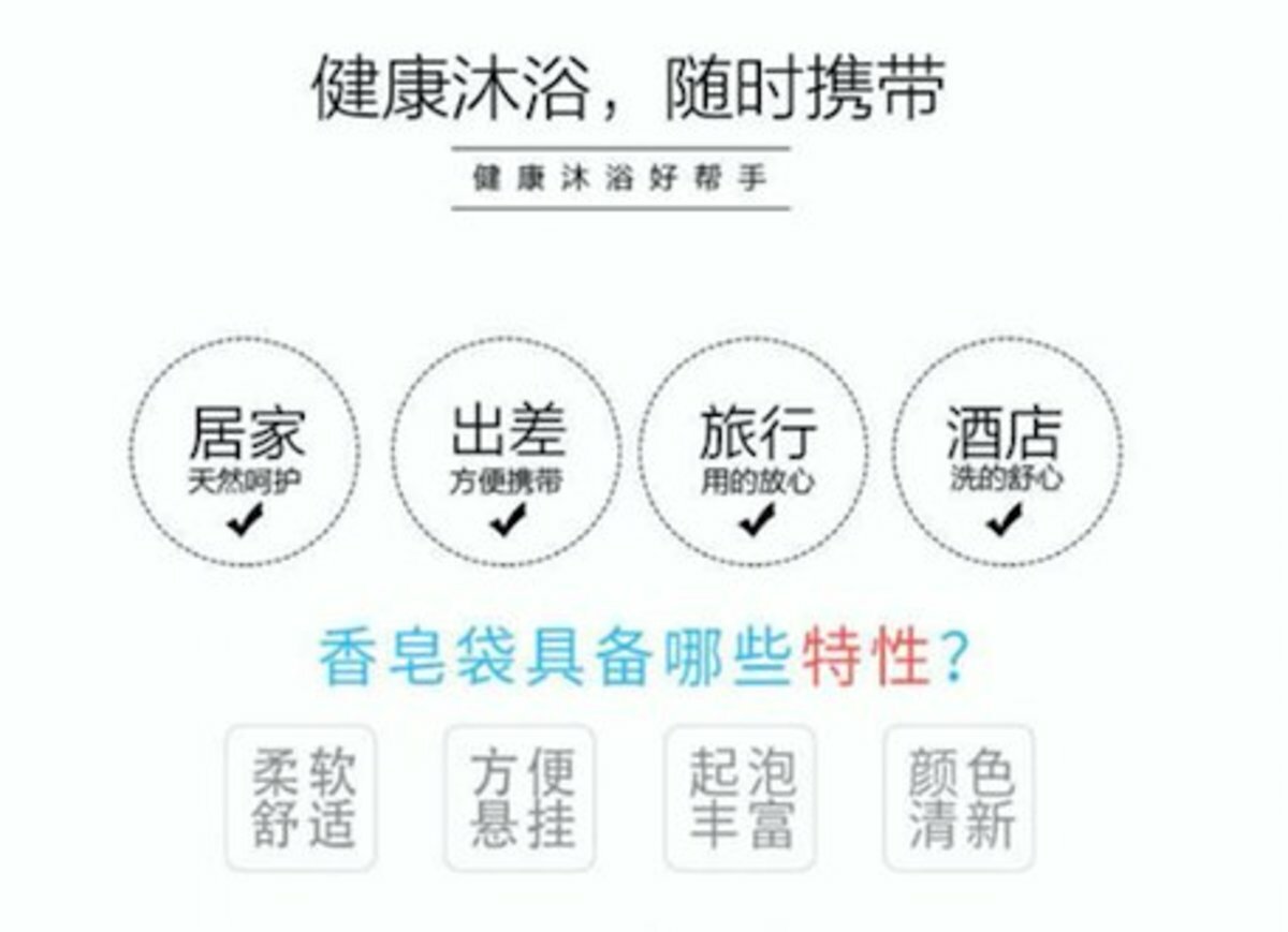 天然的潔膚產品由於無添加所以單純用手揉搓很難產生豐富的泡沫,潔膚效果未如理想. 這時起泡袋起到一個非常重要的作用,起泡袋的網孔越細,搓出的泡沫就越細膩,細膩的泡沫能深入肌膚,達至更理想的潔膚功效.